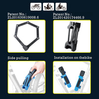 The Nakto Foldable Lock is a compact and secure solution designed for e-bike riders. Featuring a durable iron body, it offers enhanced anti-theft protection while remaining easy to fold and store. Its space-saving design allows for convenient placement in a bike basket or other storage areas without taking up unnecessary room. Whether you're commuting or parking your e-bike outdoors, this lock ensures reliable security with a sleek, foldable structure.