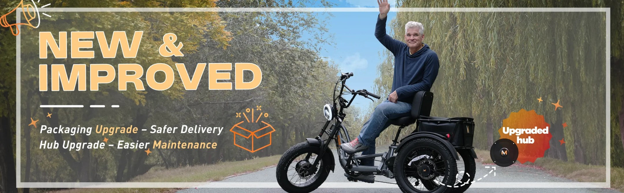 Ride in comfort and confidence with the Meetone Tour Lite, a full-suspension electric trike designed for stability, power, and adventure. Featuring a 750W motor and large-capacity battery, this trike delivers effortless cruising with an impressive range. Its full suspension system absorbs bumps for a smooth ride, while the low step-through frame ensures easy access for all riders. Perfect for city commutes, scenic trails, or hauling cargo, the Tour Lite redefines what’s possible on three wheels.