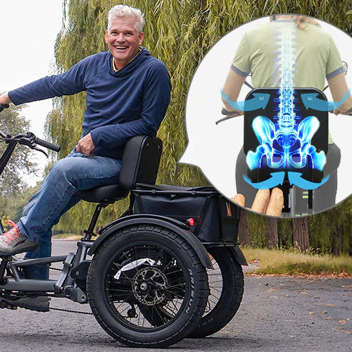 The Tour E-Trike comes with a big rear cargo basket that can hold up to 150 lbs, providing ample space for essentials, making it perfect for park outings or shopping trips.