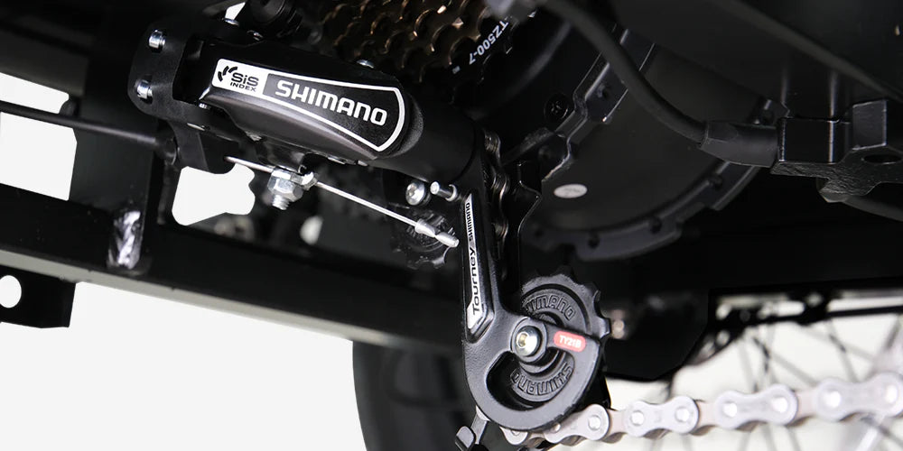 The Shimano 7-speed transmission system enhances your riding comfort by providing smooth, effortless transitions across various terrains. Whether climbing hills or cruising flat roads, this transmission allows you to find the perfect level of resistance, reducing strain and ensuring a relaxed, enjoyable ride.