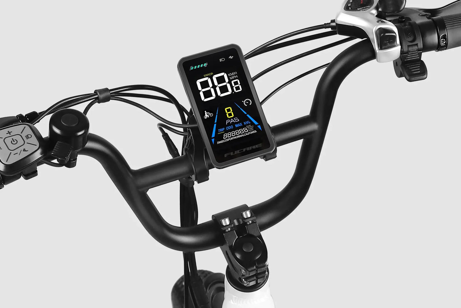 A crisp, 5-inch color LCD screen offers a clear view of your ride data. Including speed, distance traveled, pedal assist level, battery capacity, and more.