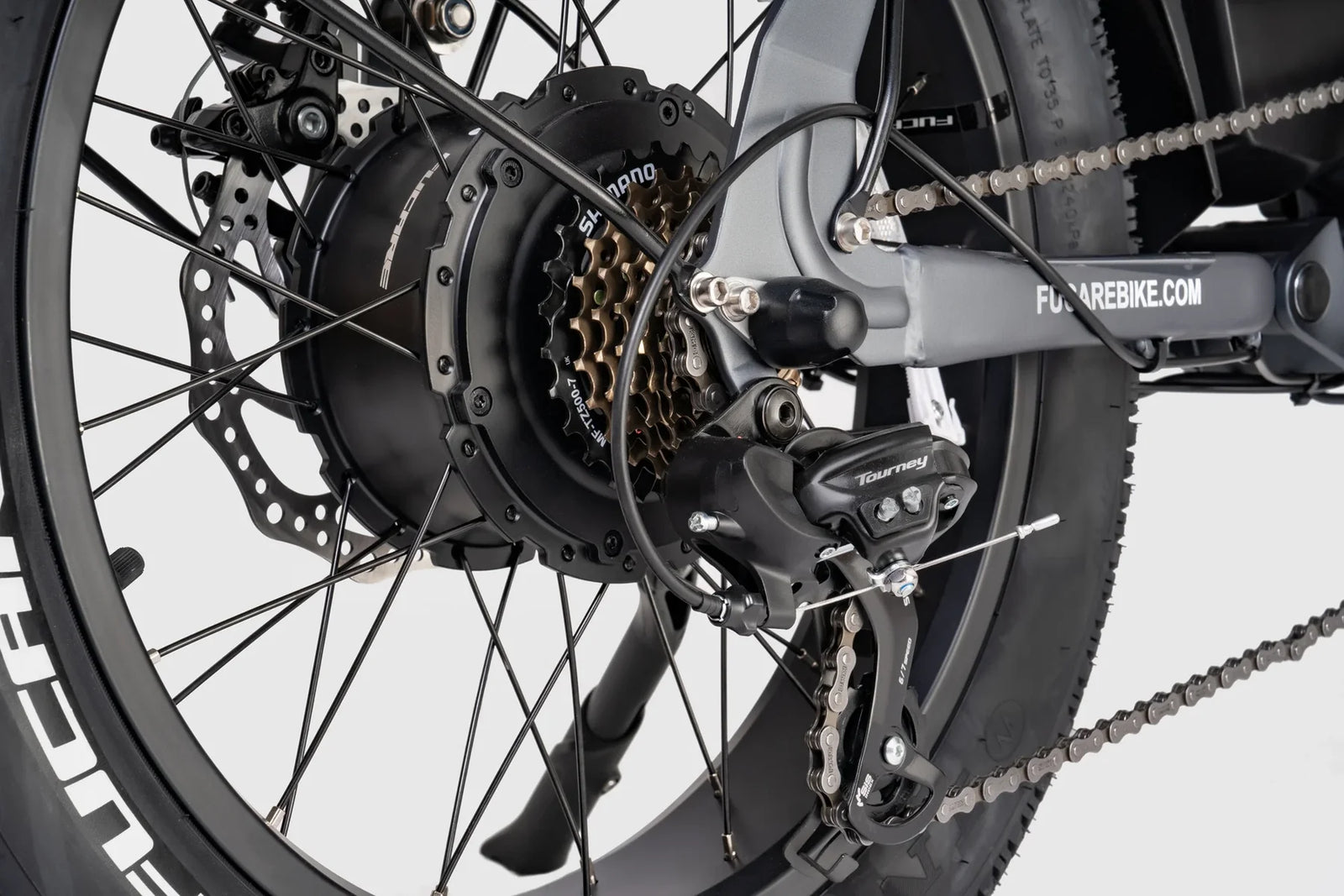 The Shimano 7-speed gear shift system provides smooth and precise shifting. Combined with the E-bike's pedal-assist system, empowers you to conquer any journey at your desired speed.