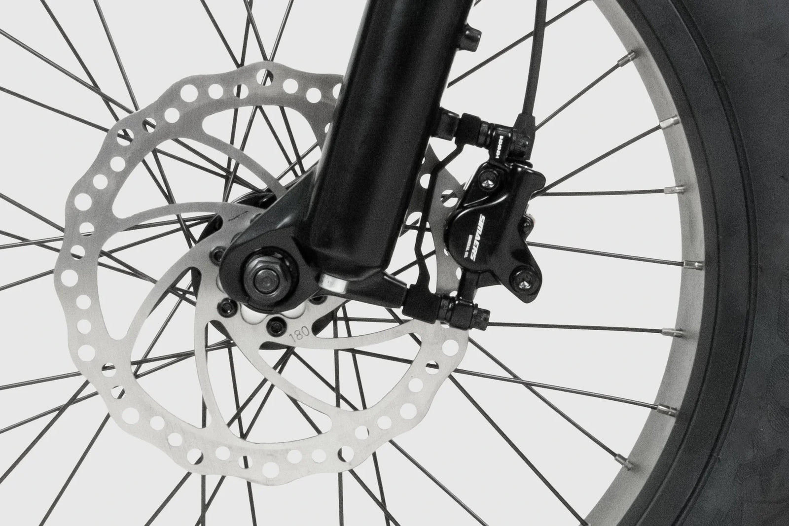 Equipped with powerful 180mm hydraulic disc brakes. These brakes deliver superior stopping power in all weather conditions, thanks to the use of oil pressure for smooth, controlled braking.