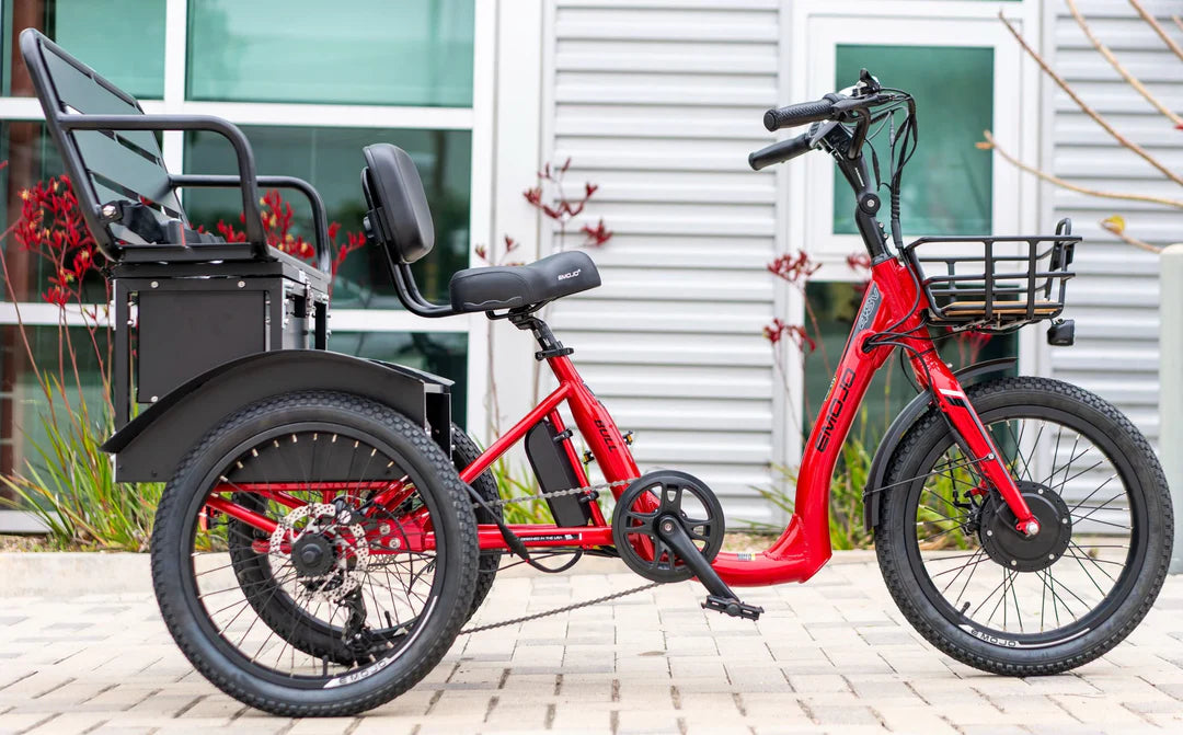 The Emojo Bull Urban Cruiser Electric Trike combines power, comfort, and versatility. Equipped with a 500W brushless motor and a 48V/14Ah lithium-ion battery, it offers a smooth ride with a top speed of 20 MPH and a range of up to 65 miles. The optional extra battery extends the range to 100 miles for longer journeys. Designed with families in mind, the Bull Urban Cruiser features an ultra-low 8.5" step-through frame and a rear passenger bench that supports up to 130 lbs, making it an ideal choice for seniors or anyone seeking a family-friendly, comfortable riding experience.
