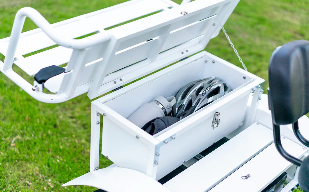 The Emojo Bull Urban Cruiser is perfect for carrying passengers or cargo. The rear bench can support up to 130 lbs, making it ideal for family rides. It also features hidden storage beneath the bench for storing snacks, toys, or other essentials. When you need extra cargo space, the rear bench can be swapped out for a rear basket to carry additional loads.