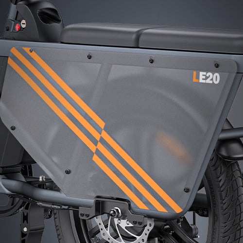 The LE20 is equipped with 20"x3" puncture-resistant tires designed to withstand rough terrains and urban obstacles. These durable tires ensure a smooth and worry-free ride.