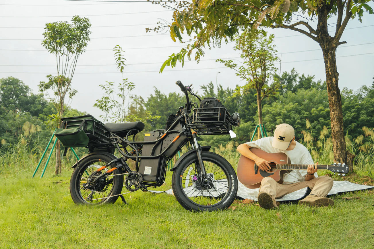 This bike can handle all your typical cargo hauling needs with a maximum payload Capacity of 330 lbs. It is equipped with front and rear baskets, to help carry packages, delivery boxes or cargo for your next adventure with ease.