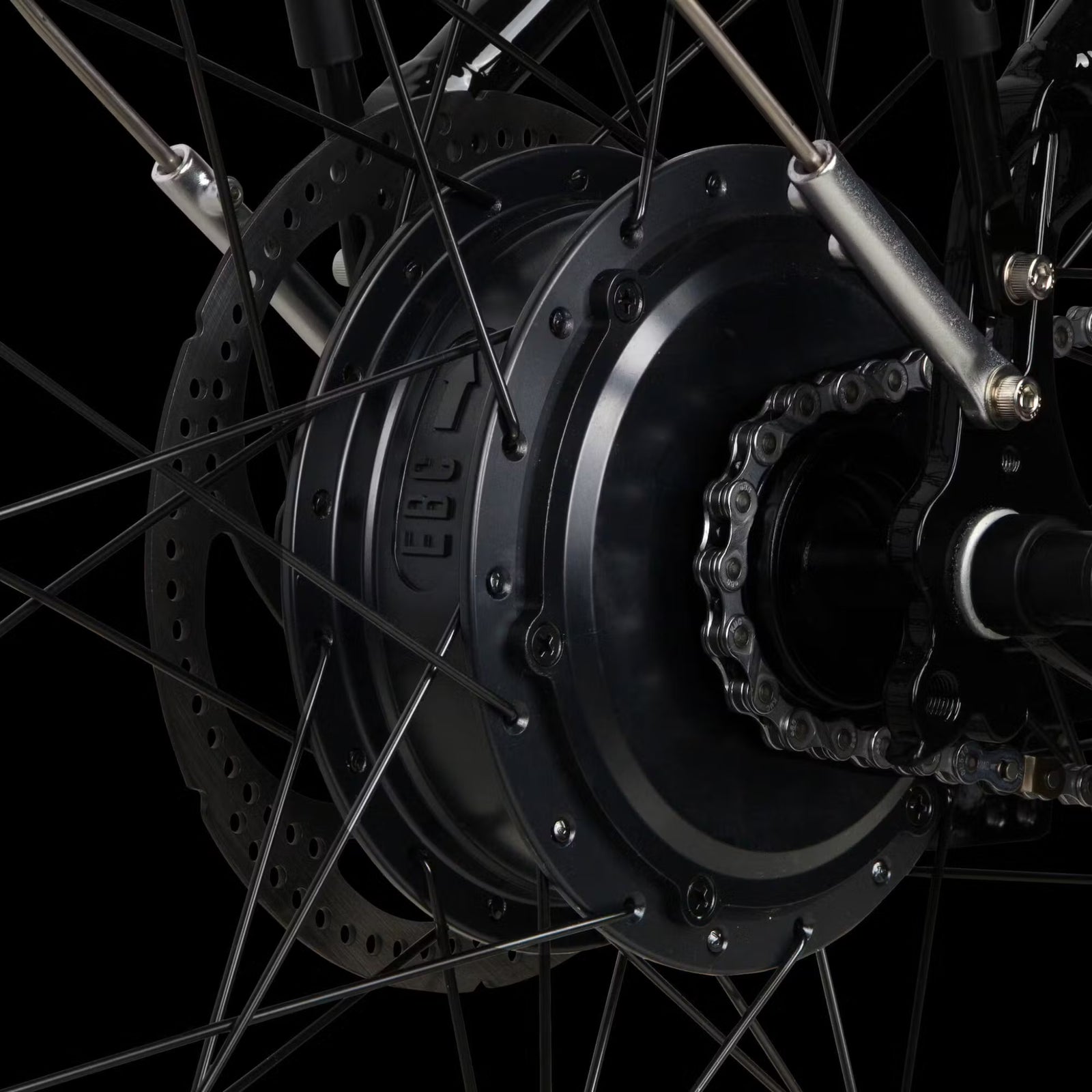 EBC's Model C (formerly Model A) features both the crossbar and battery on the down tube frame to consolidate the center of gravity. This bike is perfect for commuters and it's rear rack for cargo can easily adapt a Child seat (sold separately) making it a convenient family-friendly option!