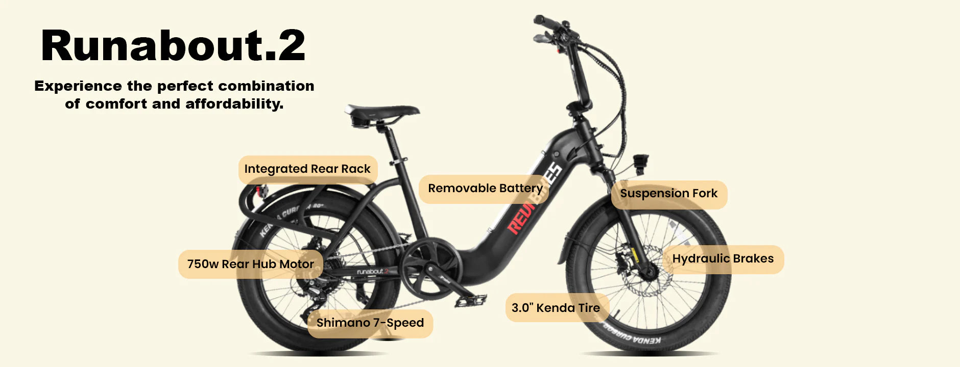 The Runabout.2 is your ultimate city utility e-bike, designed for practicality and performance. With a sturdy rear rack capable of carrying up to 100 lbs and an integrated frame supporting a total payload of 350 lbs, this bike is perfect for hauling groceries, gear, or daily essentials. Its compact design, powerful 750W motor, and high-capacity Samsung battery ensure smooth rides while handling heavy loads effortlessly. Elevate your cargo-carrying game with the Runabout.2!