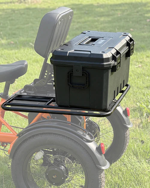 An extended, reinforced rear frame offers more space and supports up to100 lbs, making it ideal for everyday hauling. An optional larger rear rack further expands cargo capacity for added versatility.